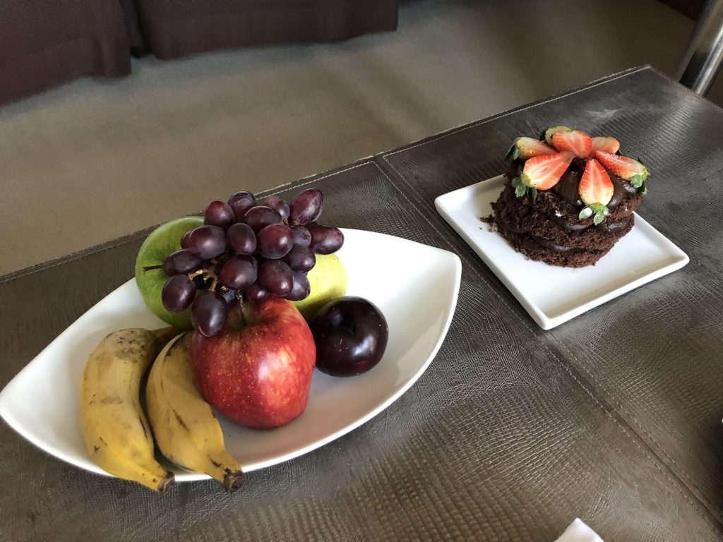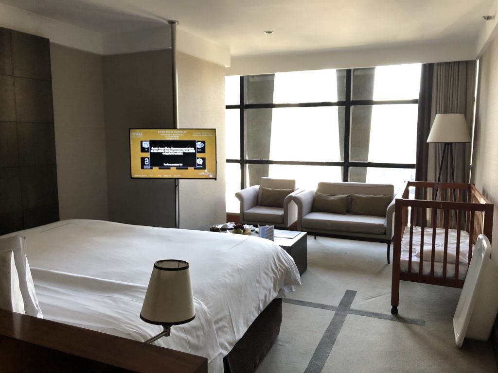 今回は1キングベットのデラックス・プラスというお部屋に滞在しました。ちょうど私の誕生日で、運よくアップグレードしていただけました。こちらのお部屋は38平米ととても広々としていて、ベビーベッドを置いても窮屈な感じはなかったです。元々予約してあった部屋は29平米と若干狭いお部屋だったので有り難かったです。