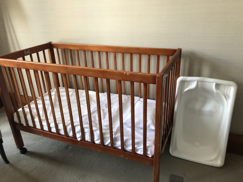 今回はベビーベッドとベビーバスをリクエスト。夜中柵に激突して何度か起きていたおチビさん。